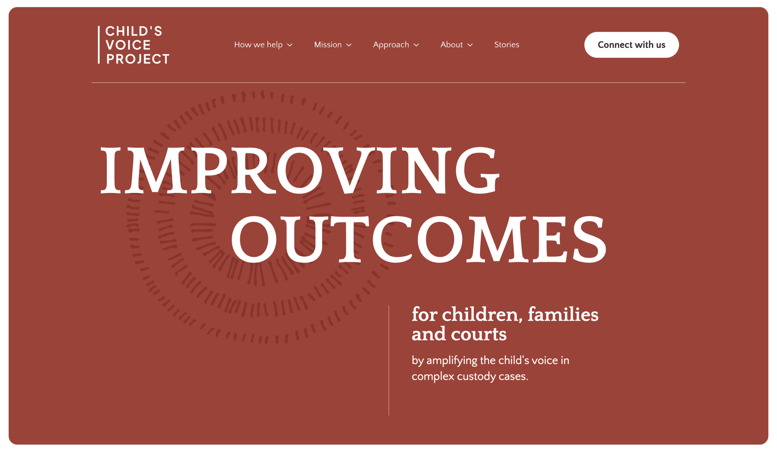 As a sponsored project of the Goodnation Foundation (which attracts resources to tackle our country’s and communities’ toughest challenges), Child’s Voice Project needed an updated website with improved functionality for greater impact on their three target groups: courts, families, and funders. The team selected e9digital as their agency for the project due to our energy, design aesthetic, past work, and client approach.