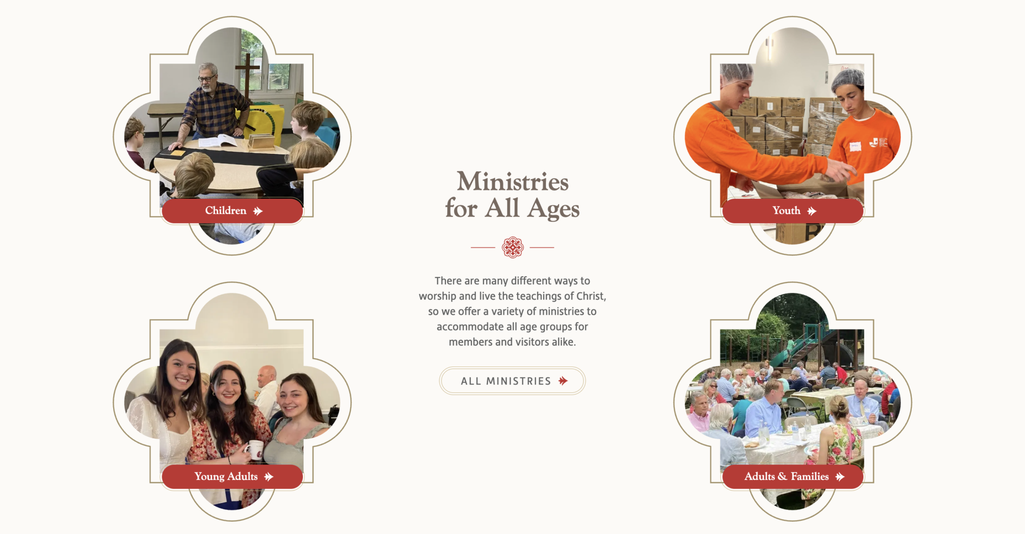 - Fast-loading hero images and diverse photographs to showcase the church’s welcoming community.