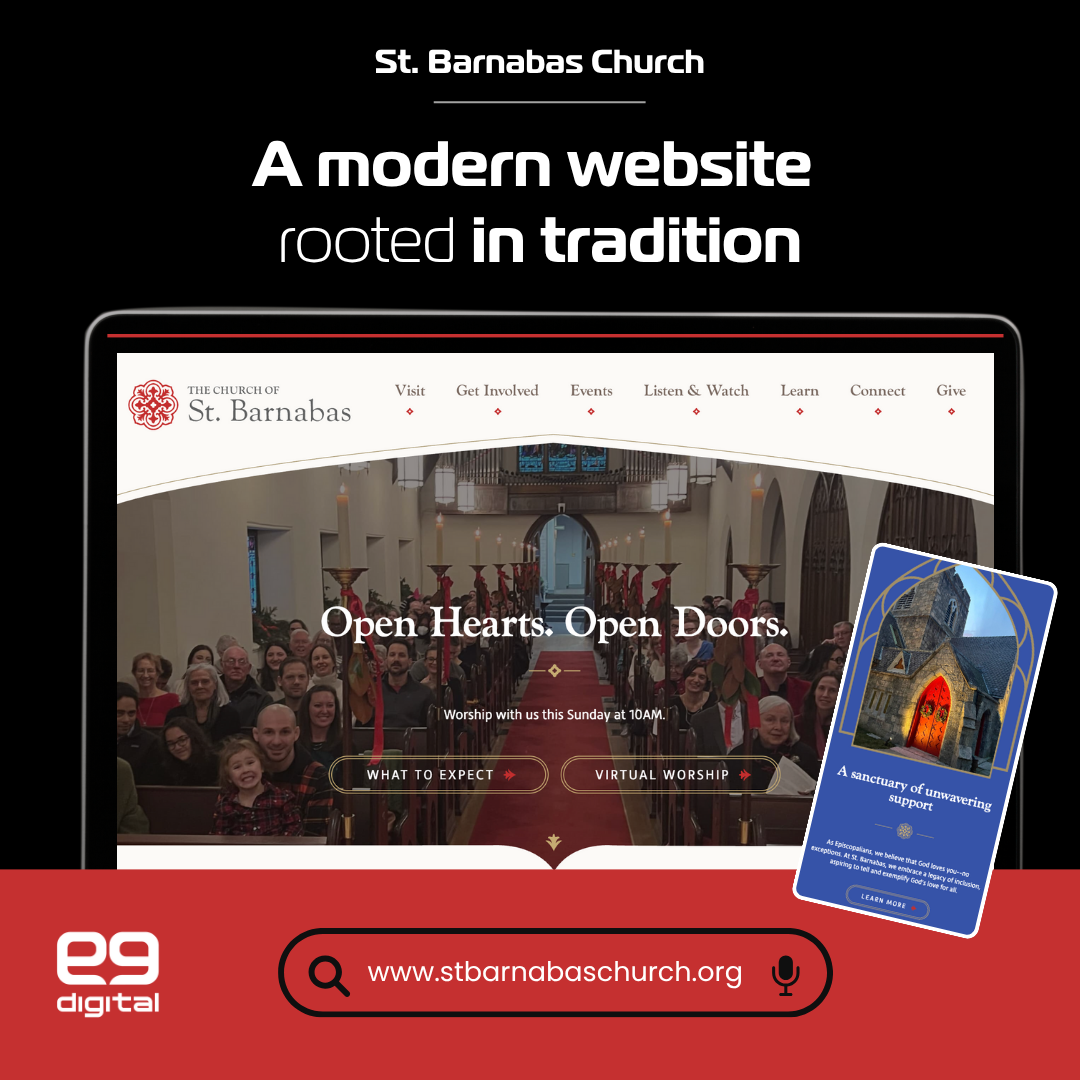 St. Barnabas Church’s new website is a platform that reflects their mission and spirit. Ready to transform your online presence? Contact e9digital today for a custom solution that captures the essence of your organization.