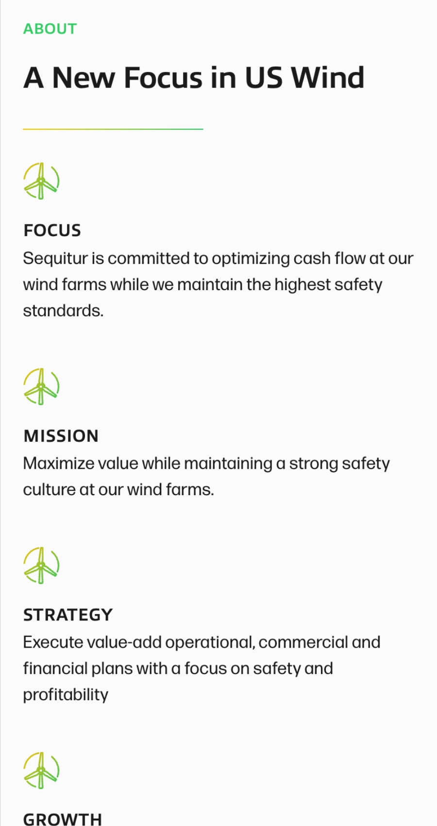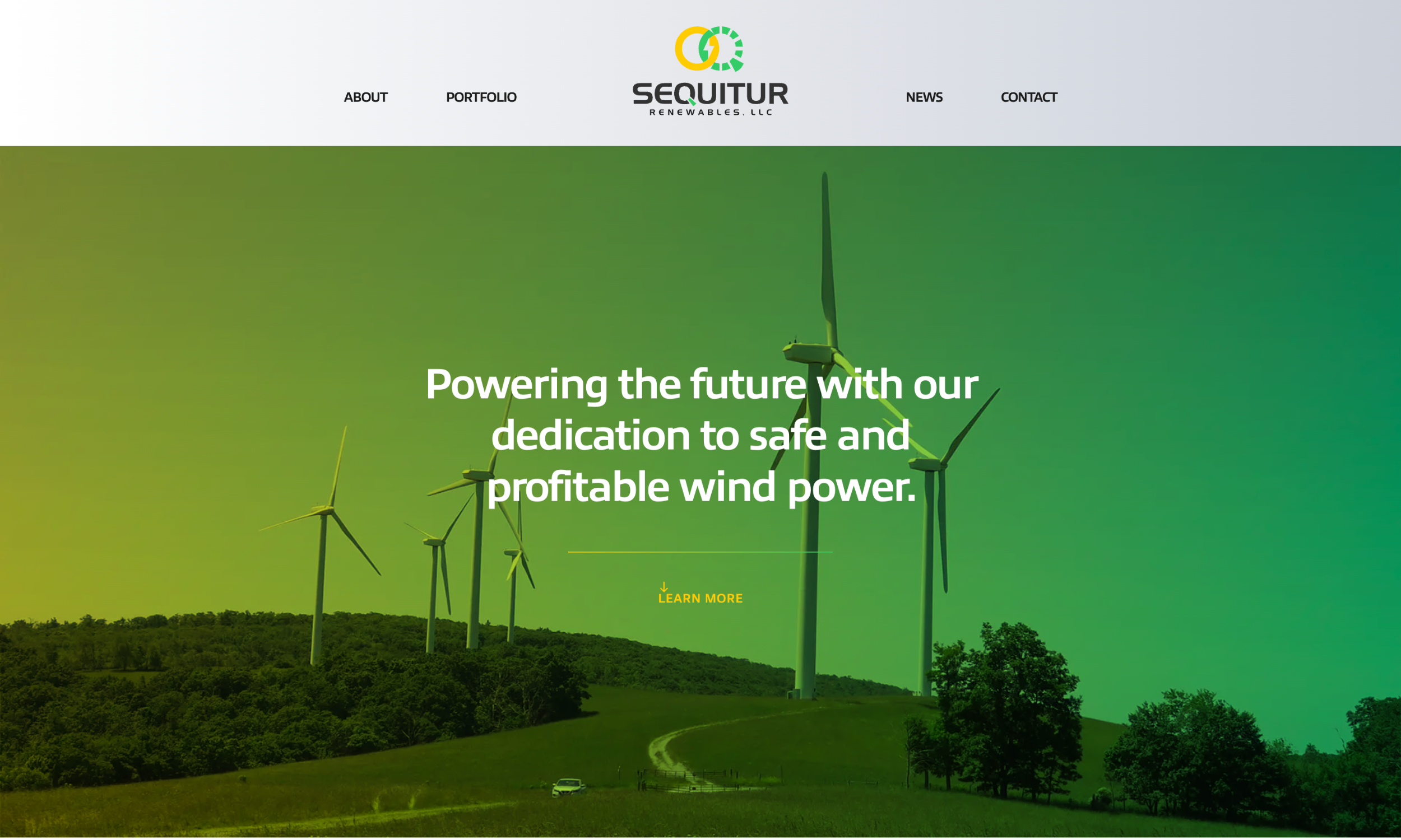 - A portfolio section to highlight their work–in the case of Sequitur Renewables, this was the locations of their different wind farms with enticing photography.
