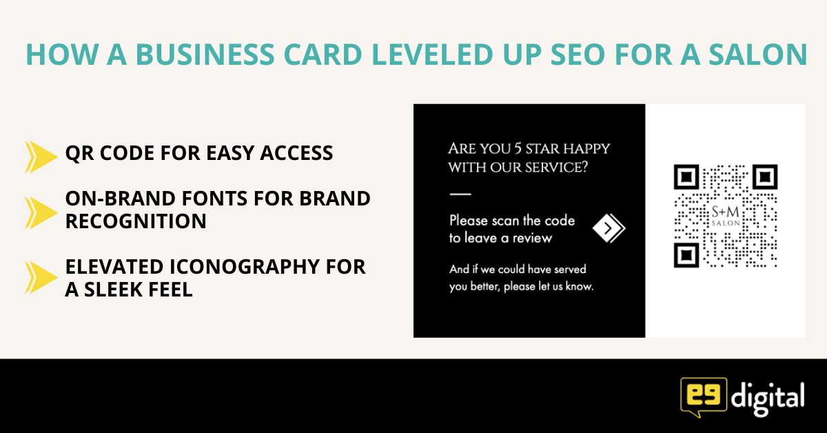 To generate more reviews, we created the Five-Star Happy Card. When David Smith or James Morgan leave clients grinning from ear to ear, they can give them a card with a QR code. The client can scan it with their phone and give them a glowing review. It’s easy and seamless, encouraging people to leave a review when they are the most excited about the experience.