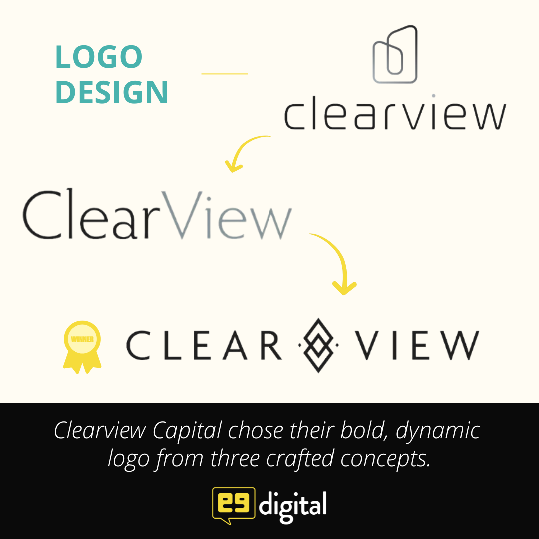 That’s why it’s so important to establish a logo first before doing any design work. Every iconic brand starts with a logo, and Clearview Capital is no exception. e9digital presented three distinct concepts, all rooted in clean, modern sans-serif typefaces tailored to hospitality and real estate owners and decision-makers.