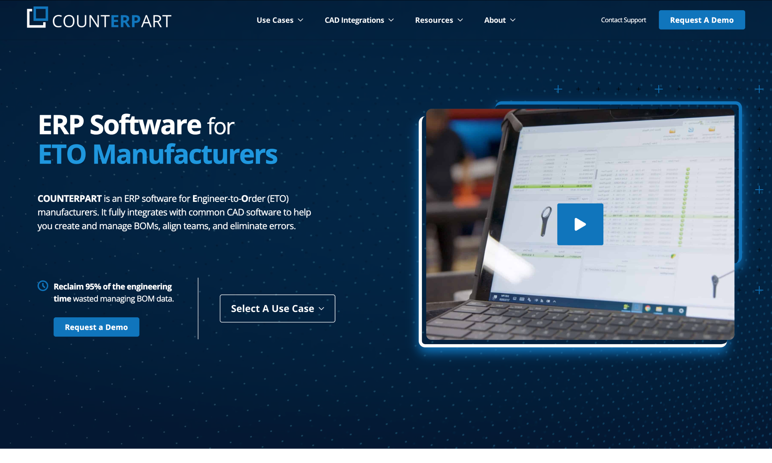 Engineer-to-Order (ETO) manufacturers must manage a complex ecosystem to build to each customer’s specific requirements, tracking them across engineering, project management, production, procurement, and finance. Specialized ERP Software like COUNTERPART eases this process, fully integrating with computer-aided design (CAD) software to create and manage BOMs, align teams, and eliminate errors.