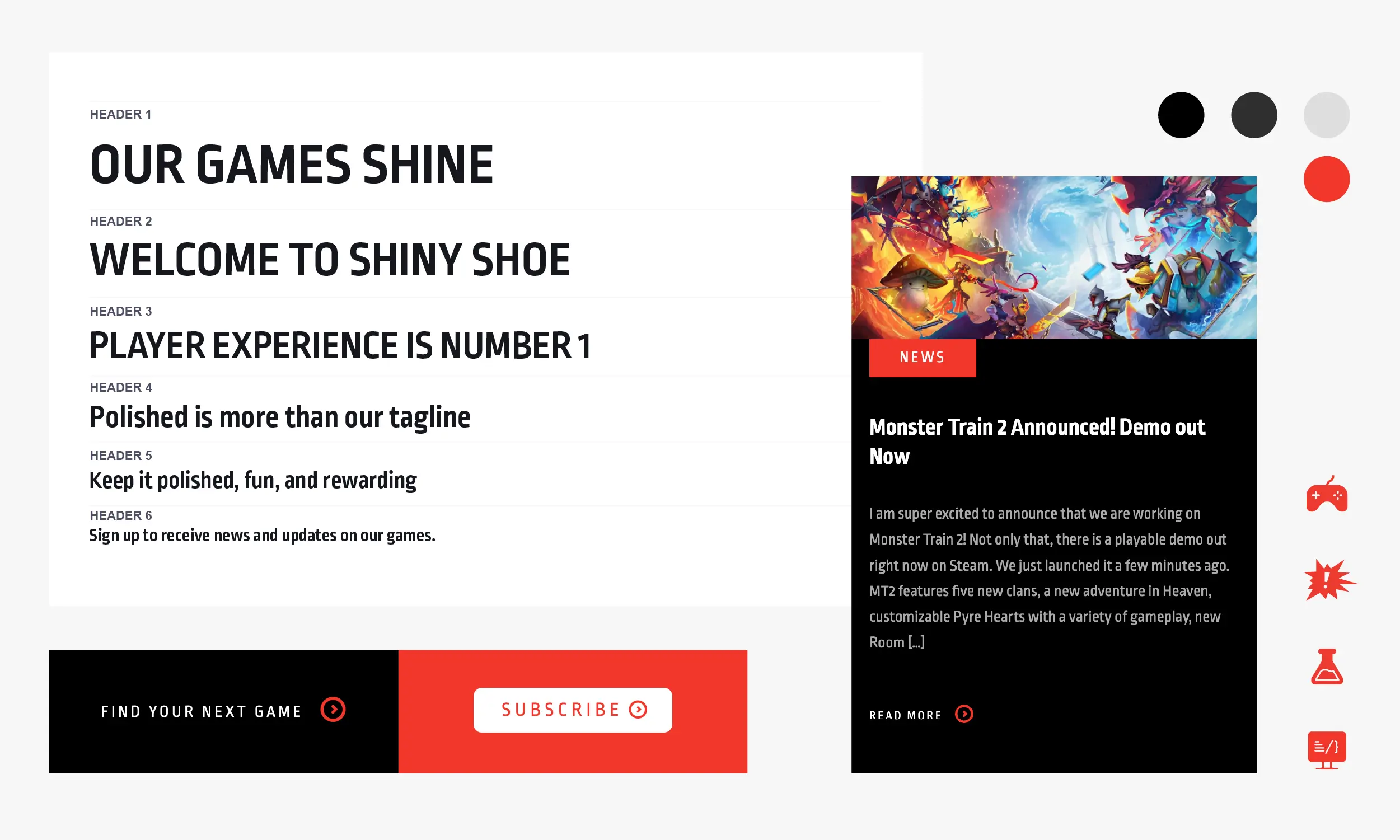 • Shiny Shoe wanted something playful yet sophisticated enough for corporate clients unfamiliar with gaming culture.