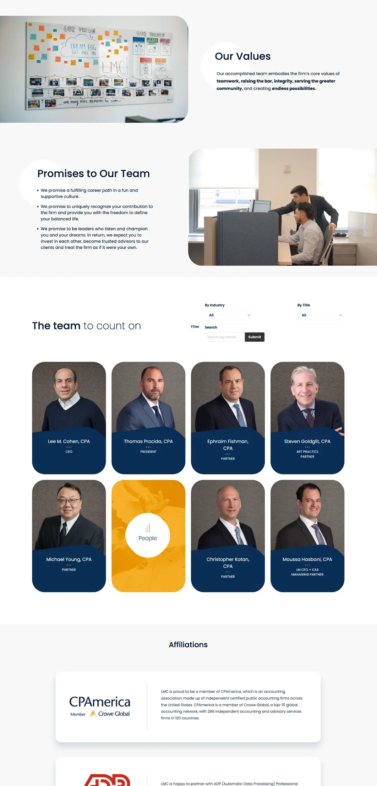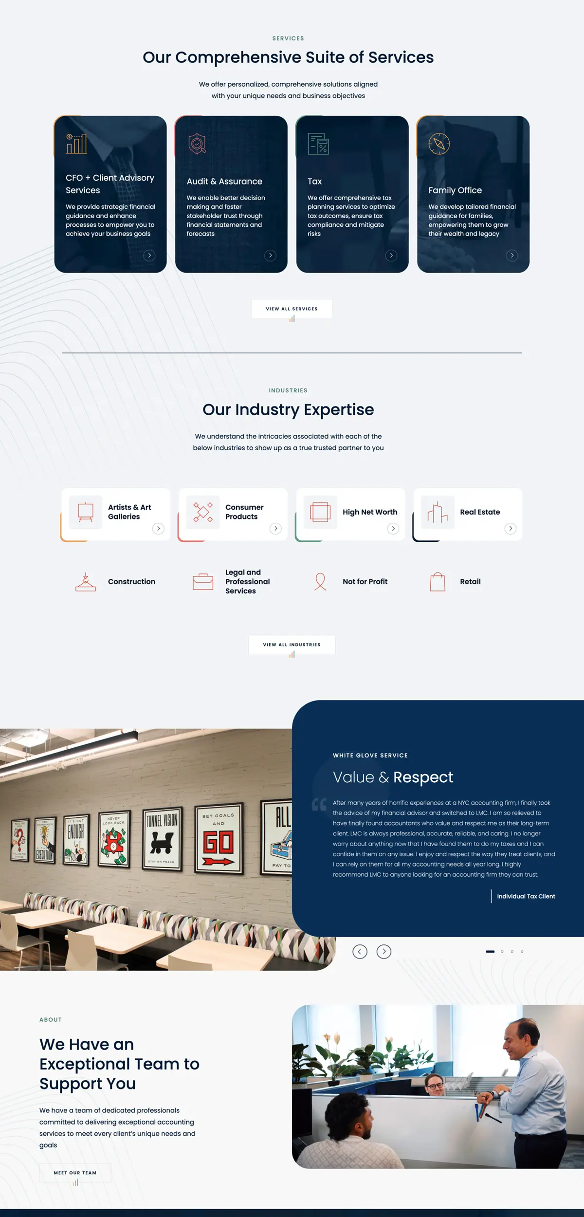 LM Cohen is a certified public accounting firm known for their unique ability to provide out-of-the-box thinking and innovative strategy as well as establish transparent and trusted relationships with clients. In August of 2020, LM Cohen approached e9digital with the purpose of developing a corporate rebranding strategy for their new name, LMC, as well as a website that best reflects their company values to attract new business, verticals, employees and gain tremendous visibility.