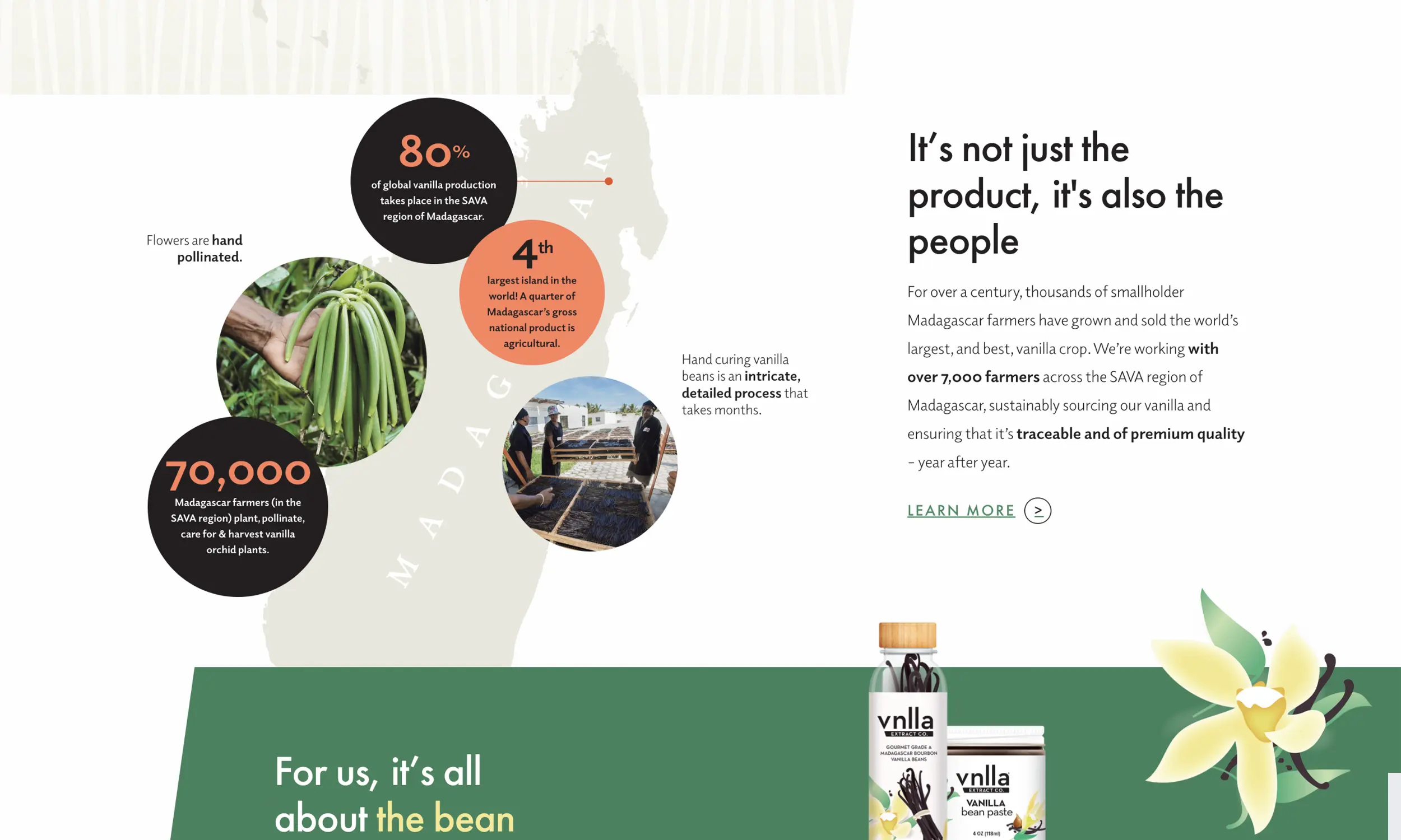 From its rich Madagascar origins to the vanilla bean’s journey to market, all of which we highlight with a dedicated story section filled with on-location videos and animation that bring to life the meaningful partnership Symrise established with local farmers—proving to mom that vnlla isn’t just about taste, but also a globally responsible brand.