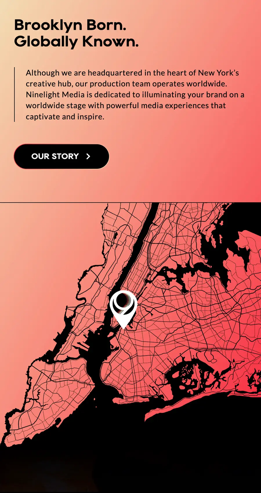 - A location area that calls out Ninelight’s convenient Brooklyn office with an invitation to read their story.